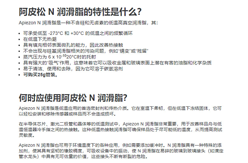 英國APIEZON阿佩佐 無硅和鹵素的低溫高真空潤滑脂N型25g