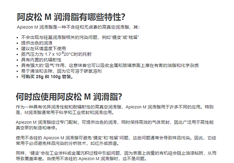 英國APIEZON阿佩佐M型25g 100g真空潤滑脂劑硅脂密封10 至 30°