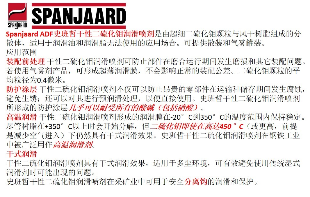 Spanjaard ADF(史班哲干性二硫化鉬潤滑噴劑)-20℃~350℃使用