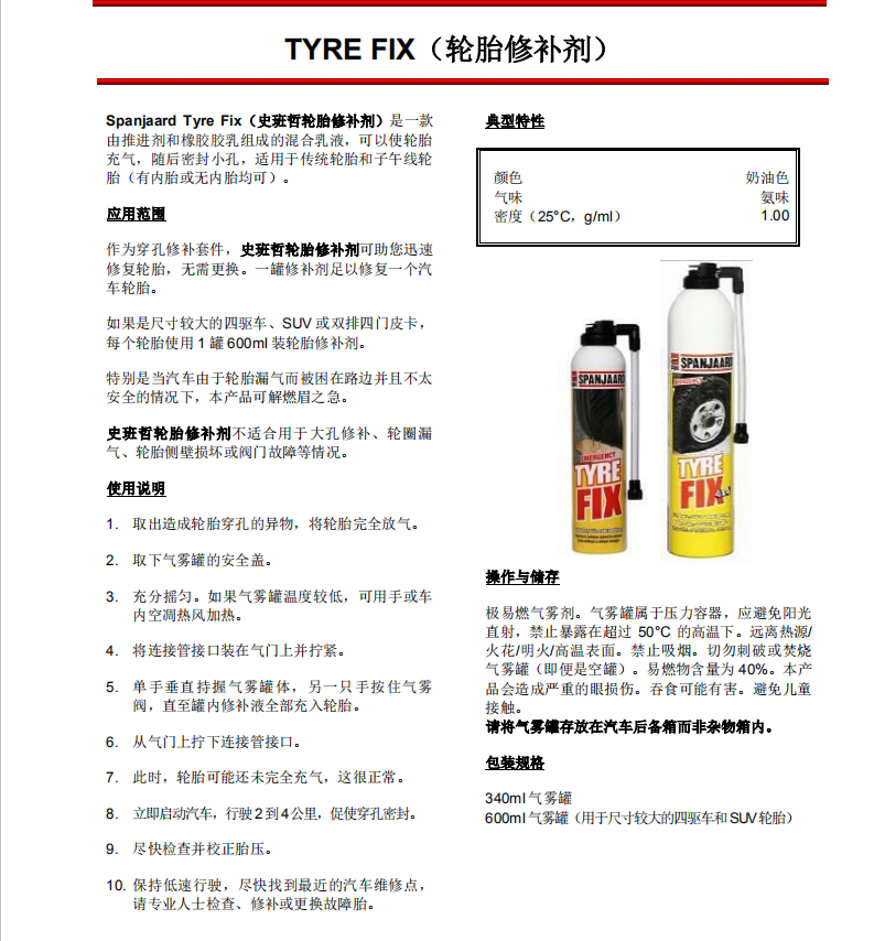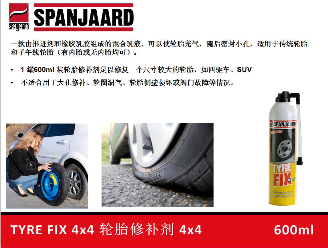 SpanjaardTYRE FIX 4x4史班哲輪胎應(yīng)急快速修補(bǔ)劑輪圈漏氣修補(bǔ)劑