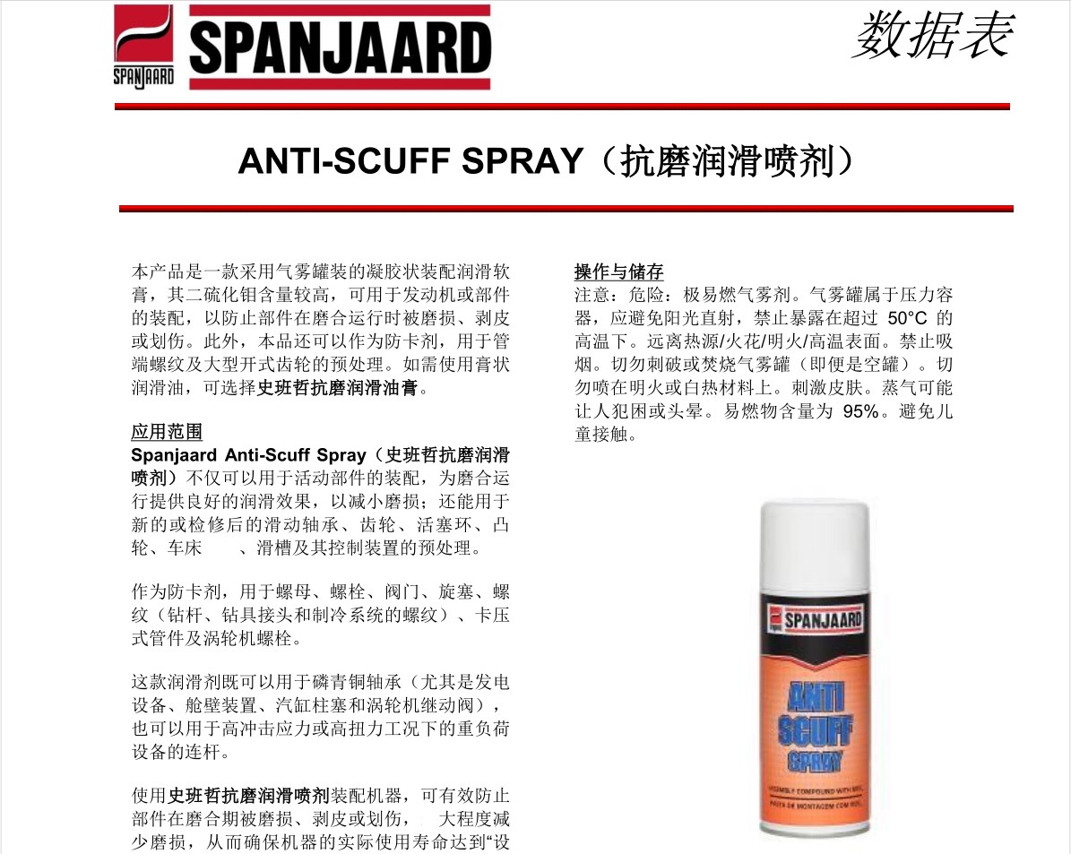 史班哲Anti-Scuff Spray/抗磨潤(rùn)滑噴劑Spanjaard大型齒輪防磨損