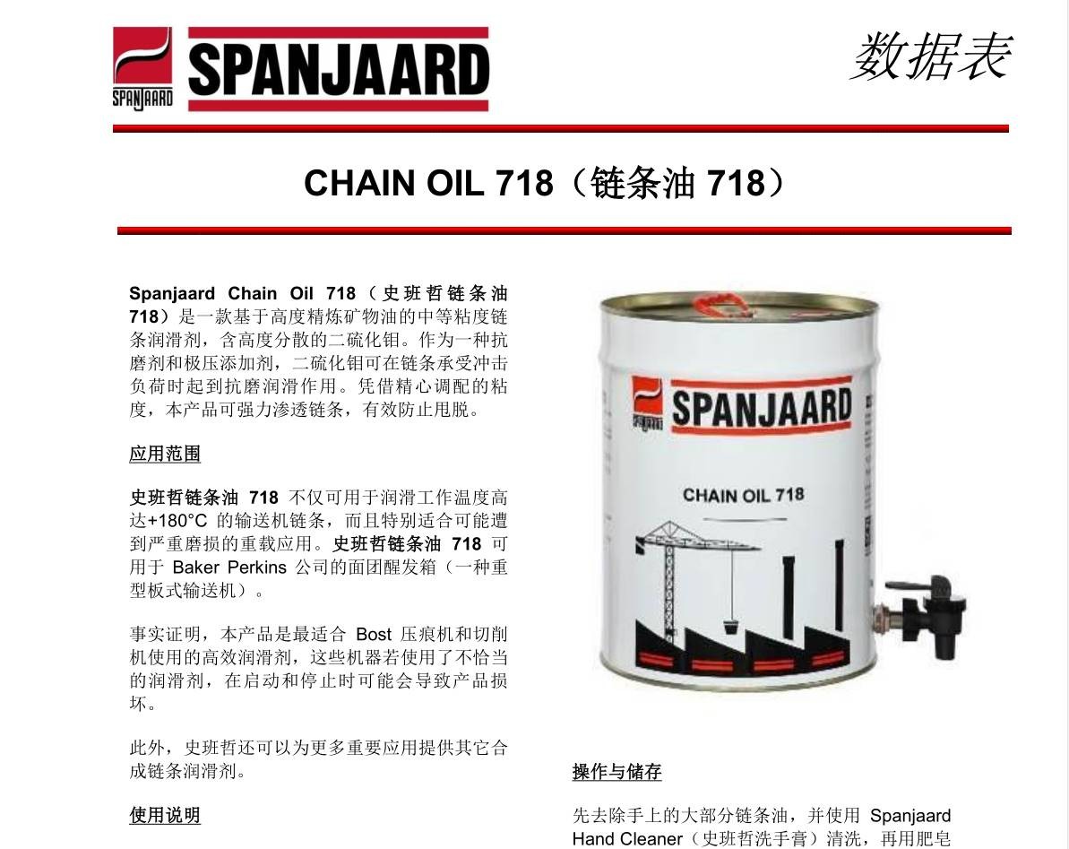 史班哲鏈條油718 Spanjaard Chain Oil 718高溫輸送機(jī)鏈條專用