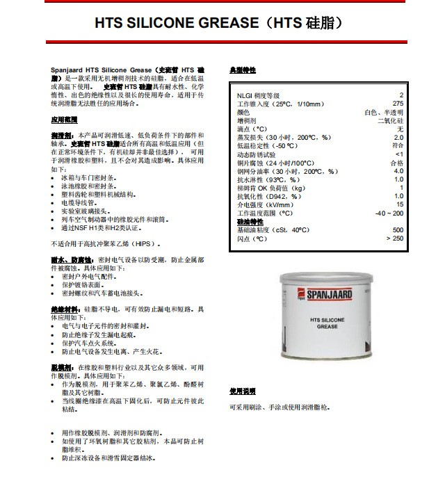 南非史班哲HTS Silicone Grease食品級(jí)HTS硅脂耐水防腐蝕潤(rùn)滑脂