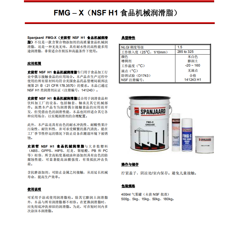 進(jìn)口史班哲FMG-X食品級(jí)潤(rùn)滑油導(dǎo)軌軸承齒輪潤(rùn)滑脂多用途NSF 耐水