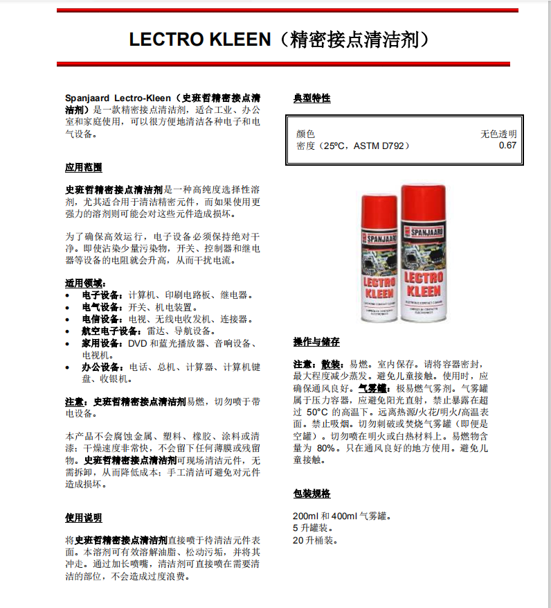 史班哲Spanjaard 接點劑觸點劑清潔電器精密電路板清洗件產(chǎn)品設備
