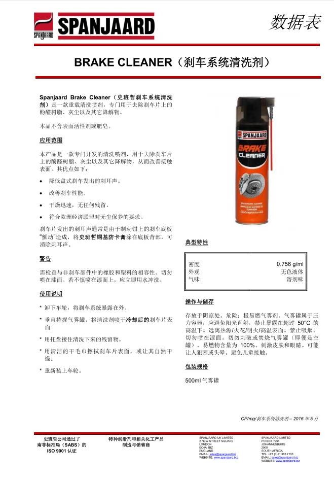 • 型號(hào):???史班哲剎車(chē)系統(tǒng)清洗劑